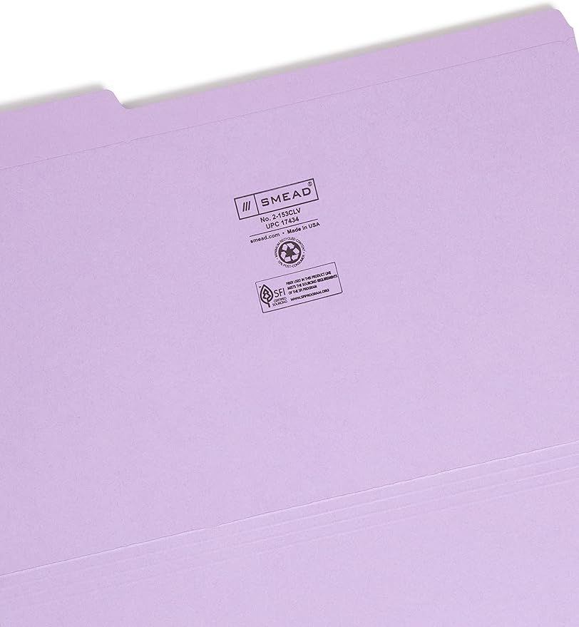 Smead File Folder, Reinforced 1/3-Cut Tab, Legal Size, Lavender, 100 per Box (17434)