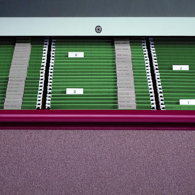 - ESSENTIAL & RELIABLE: Keep your hanging files organized and secure with these sturdy letter size hanging file folders for filing cabinets in standard green; 1/5-cut clear poly tab with replaceable white inserts are movable for convenient labeling