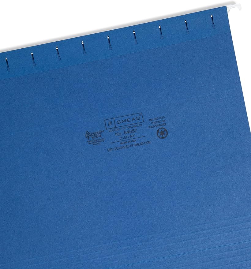- SUSTAINABLE AND MADE IN USA: These folders are proudly made in the USA and contain 10% recycled content and 10% post-consumer material; SFI certified, reflecting Smead's commitment to environmental responsibility