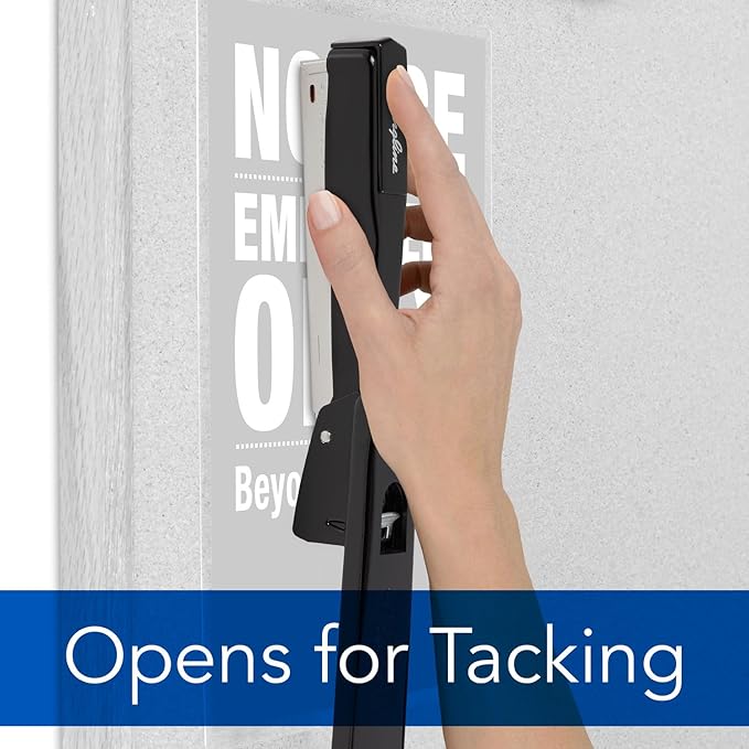 - TACKING & PINNING – Tack papers to bulletin boards with ease: unlatch the stapler and you're ready. The stapler can also produce pointed staples for temporary pinning: just reverse the anvil.