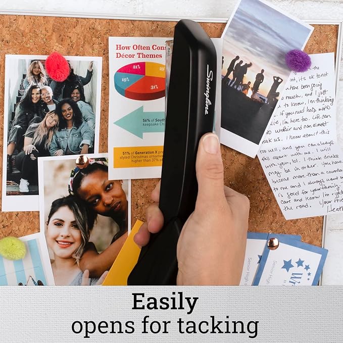 - TACKING & PINNING – Tack papers to bulletin boards with ease: open the top of the stapler and you're ready to go. And it's simple to make pointed staples for temporary pinning: just reverse the anvil.