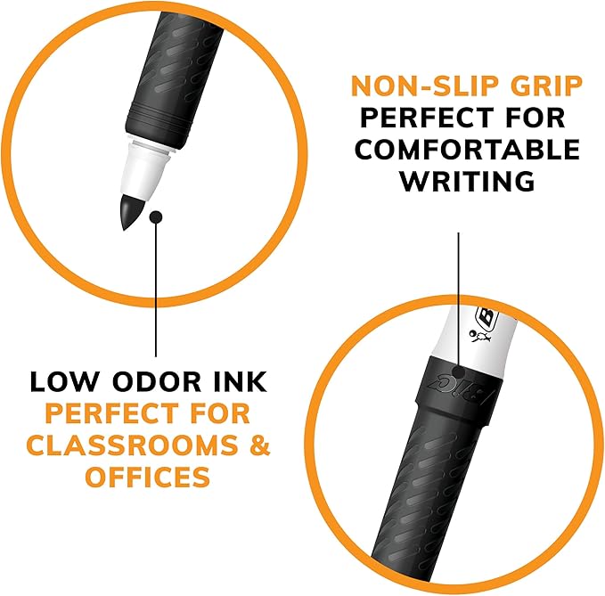 - BIC markers with low-odor ink provide consistent ink flow and ensure a pleasant writing experience