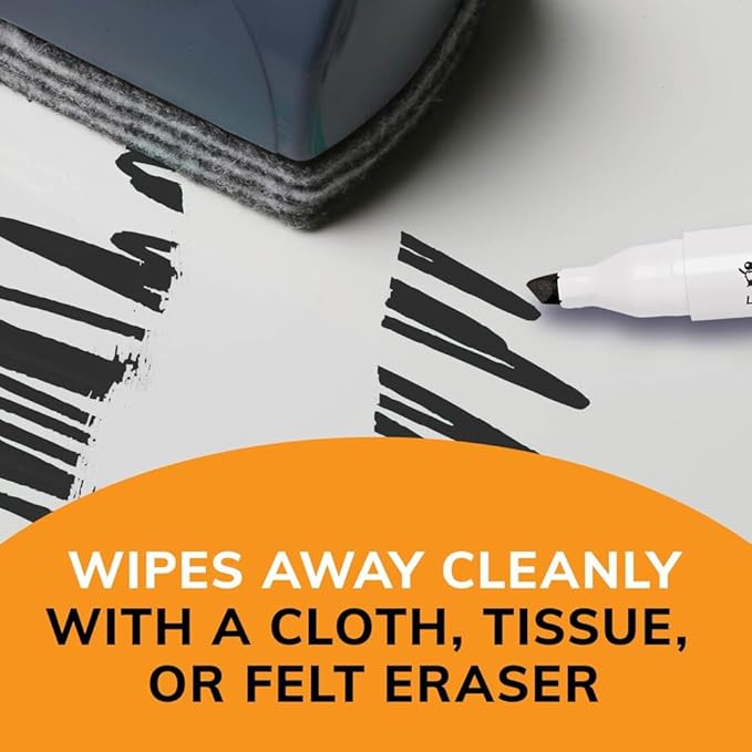 - Erasable markers ensure minimal smearing on whiteboards and wipe away quickly with a cloth, tissue or felt eraser