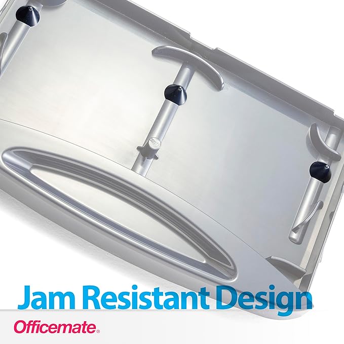 Officemate Deluxe 3-Hole Punch, Heavy Duty, with Chip Drawer, 45 Sheet Capacity (90100), Silver/Navy