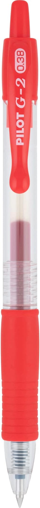 Pilot G2 Premium Gel Roller Pens, Ultra Fine Point 0.38 mm, Red Pens, Pack of 12 - Ideal for School, Journaling & Office Writing