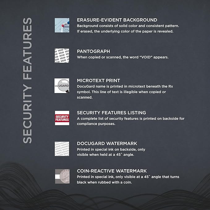 - Meets and exceeds federal guidelines for tamper-resistant security paper.