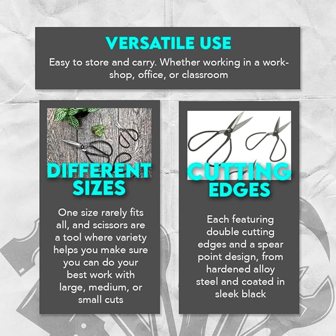 - COMPACT AND CONVENIENT - The compact design of these scissors makes them easy to store and carry. Whether working in a workshop, office, or classroom, these scissors can be conveniently stored in your desk drawer or craft kit.
