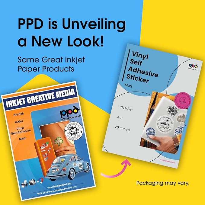 PPD Printable Vinyl Sticker Paper for Inkjet Printer, Matte Sticker Paper 8.5 x 11, Self-Adhesive Print Your Own Stickers at Home, Custom Photo, Waterproof & Tear Resistant, Instant Dry (20 Sheets)