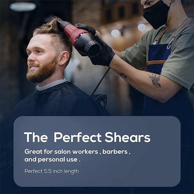 - βοΈ ALL-IN-ONE HAIR SCISSORS: These 5.5" hair scissors are designed for professionals but also equally entertain home users. Designed to handle all hair textures, from thick to coarse strands or delicate, silky locks with equal ease. whether you're shaping bouncy curls or trimming split ends, shaping bangs or adding layers to long lengths, or defining sideburns. These featherlight & easy-on-hand scissors are perfect for men, women, teenagers, seniors, & even kids β anyone who needs a haircut!