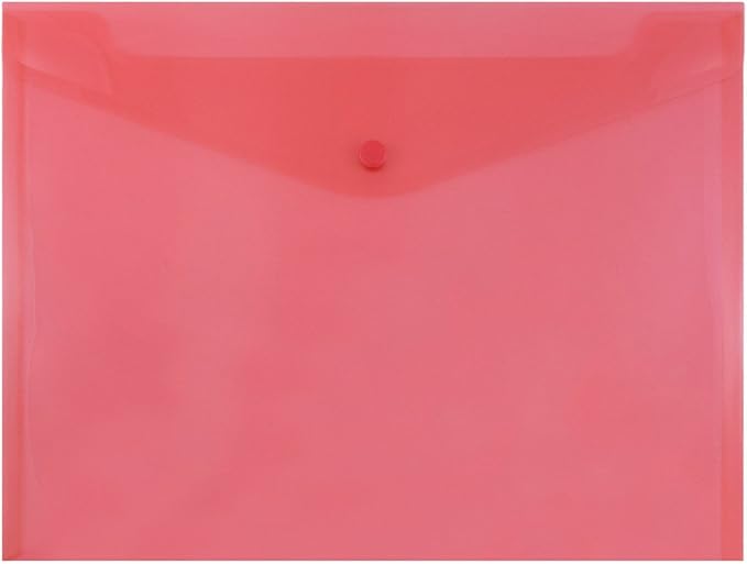 JAM PAPER Plastic Envelopes with Snap Closure - Letter Booklet - 9 3/4 x 13 - Red - 12/Pack
