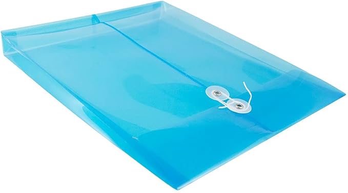 JAM PAPER Plastic Envelopes with Button & String Tie Closure - Letter Open End - 9 3/4 x 11 3/4 - Blue - 12/Pack