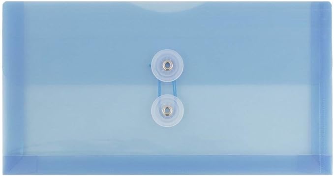 JAM PAPER Plastic Envelopes with Button & String Tie Closure - #10 Business Booklet - 5 1/4 x 10 - Blue - 12/Pack