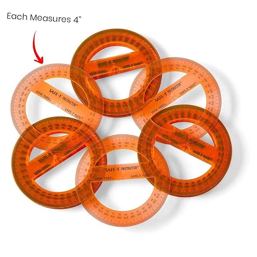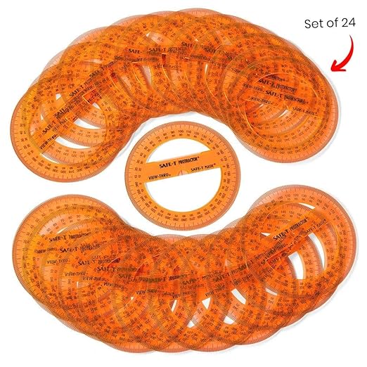 - TEACHER SUPPLIES FOR MATH CLASSROOM: This set includes 24 Four-inch, 360° clear Safe-T Protractors.