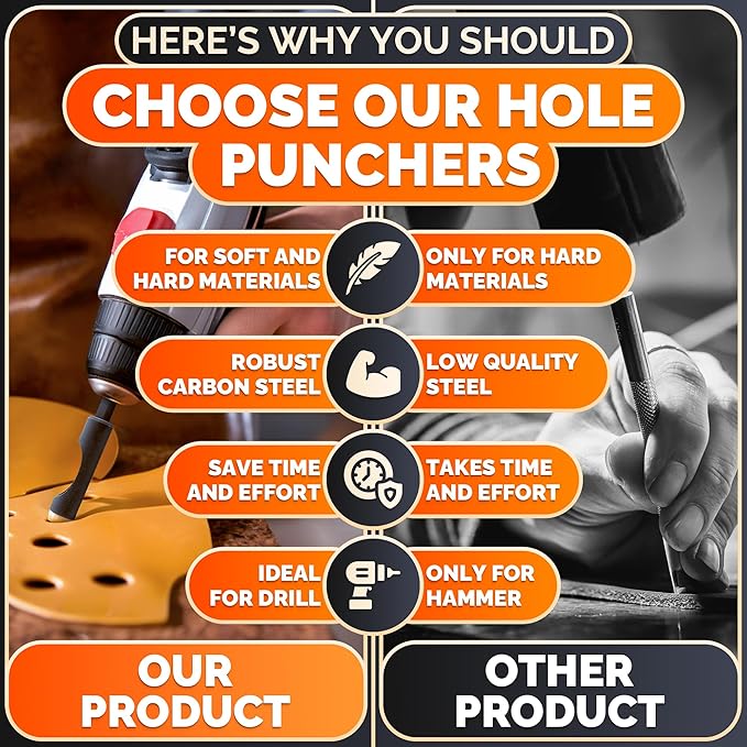 - Convenient for Drill Use: Simplify your projects with our belt puncher for leather. Upgrade your toolkit with a leather hole puncher for belts that allows easy drill round holes in different surfaces
