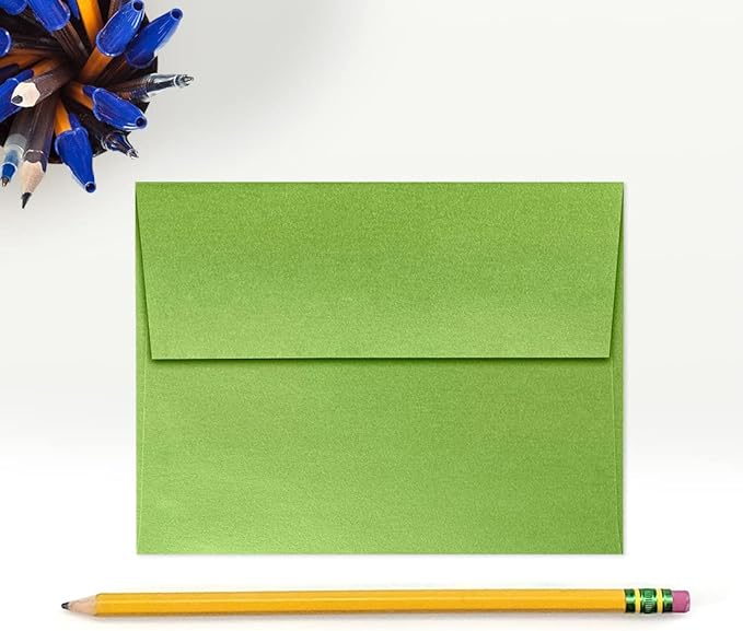 - VIBRANT METALLIC COLOR: If you want a high-quality envelope, this is the item for you. Made from 80 lb. text-weight paper stock, these envelopes are about twice as thick as printer paper. If this shimmery shade of bright green isn’t right for you, we offer these envelopes in many other color options that are sure to match your style.