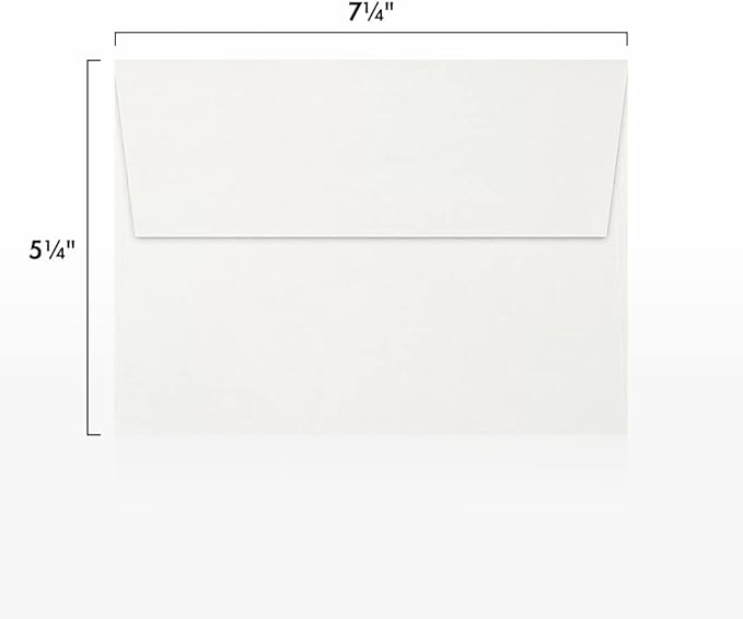 - DURABLE & RELIABLE: These envelopes make excellent invitation holders and are 5 1/4" 7 1/4" (133.35mm x 184.15mm), large enough to comfortably fit 5” x 7” paper items. Made from LUX 60 lb. White paper stock with a side seam construction, these envelopes are thick and durable, making it perfect for things like photos, letters, mailings, personal mail, or invitations.