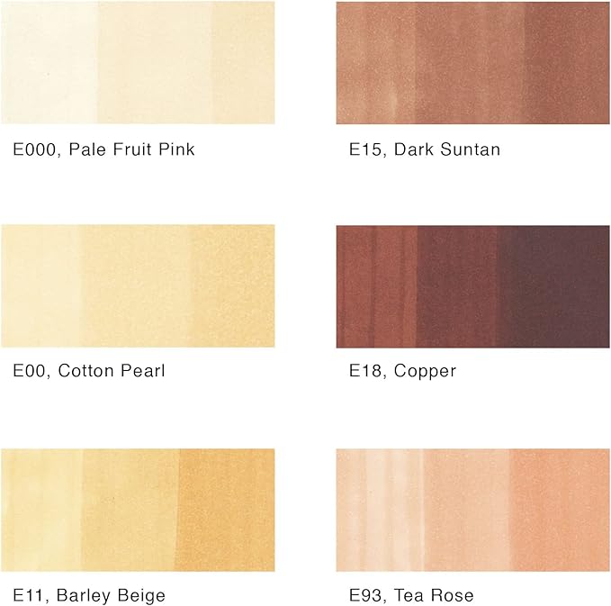 - Dual Brush Tips for Versatile Coloring – Each Copic alcohol marker includes a Super Brush tip for fine details and blending, plus a Medium Broad tip for bold strokes. Ideal for creating skin tones, pastel blends, and vivid color transitions with ease.