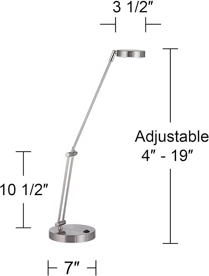 360 Lighting Jarrett Modern Desk Lamp 19" High Satin Nickel Silver Metal LED Adjustable Arm Rotating Head for Bedroom Living Room House Home Bedside Reading Office Entryway Kids Family