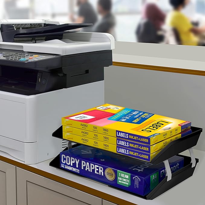 - Textured Surface and Beveled Front: The textured surface on the tray and the slightly beveled front of the letter tray prevent documents from slipping out, maintaining organization and preventing potential messes;