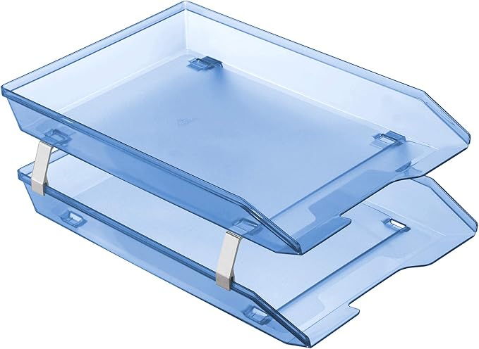 Acrimet Facility 2 Tier Letter Tray, Front Load, Letter Size/A4, Desktop File Organizer, Plastic (Clear Blue Color)