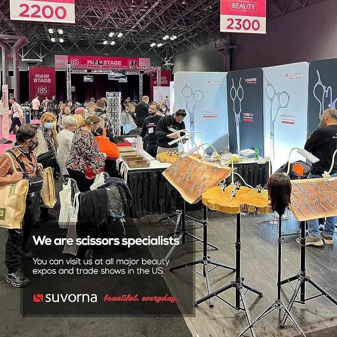 - 🏆 Japanese Professional Swivel Thumb Shears J2 420 Steel: Suvorna hair scissors professional are made with japanese stainless steel which retains the cutting edge for a long time. Every hair cutting scissors is blast sand finished by hand to beautiful matte steel and is fine-tuned to ensure the best performance. These japanese barber scissors and hair shears can last a lifetime with heat, corrosion, rust resistant, colorfast, precise, fast, and fine tijeras de peluqueria profesional.