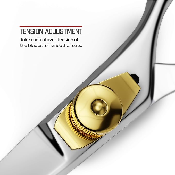 - π RAZOR SHARP HAIR SCISSORS: Suvorna's 6" perfect design tijeras para cortar cabello reduce strain on your elbows and wrists, letting you cut for longer without discomfort. Our razor-sharp, hair cutting shears glide effortlessly through hair, eliminating hair bending and pushing. Tension adjustment helps cut at your ease & large finger holes with rubber inserts suitable for both small and big hands. The hollow ground blades ensure clean snips, increasing cutting efficiency and facilitating precision cuts.