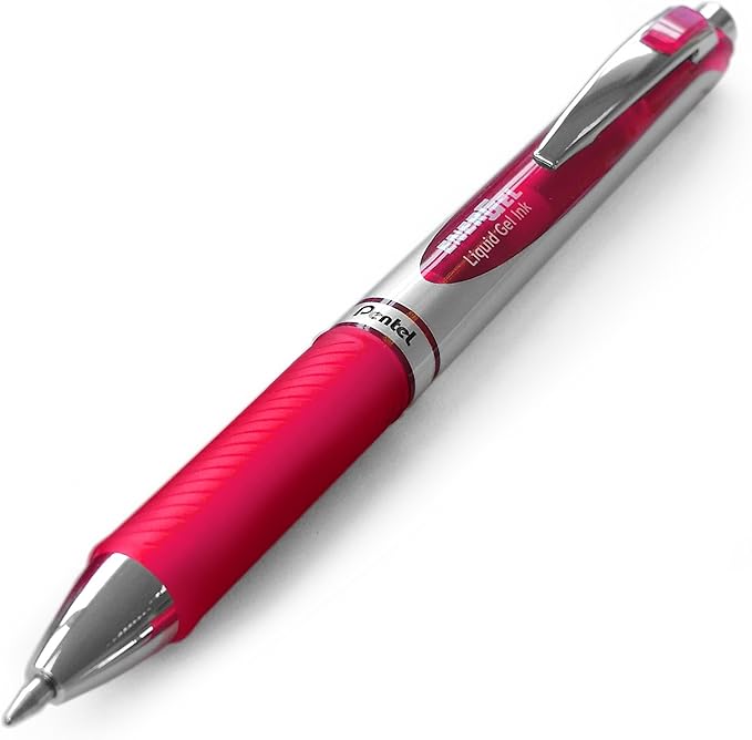 Pentel EnerGel Deluxe RTX Retractable Liquid Gel Pen, Medium Line, Metal Tip, Pink Ink, Box of 12 (BL77-P)