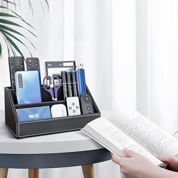 - STYLISH DESIGN PENCIL HOLDER: 5 departments can holder different office/home supplies, like remote controls , cell phone, pen /pencils, note paper, name cards and any other small accessories clutters.