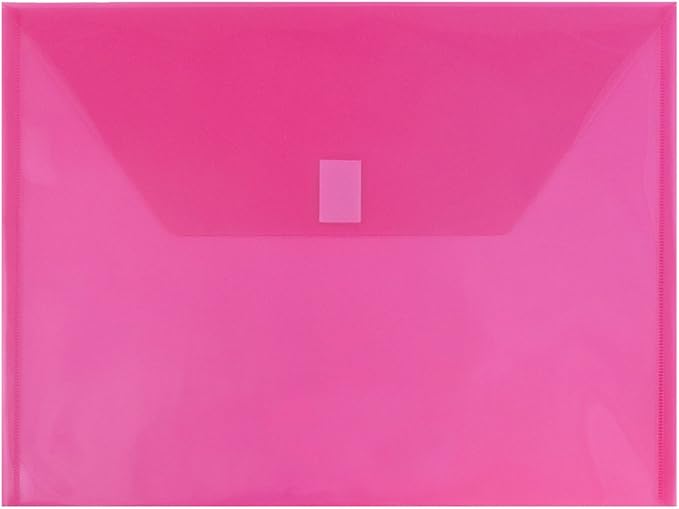 JAM PAPER Plastic Envelopes with Hook & Loop Closure - Letter Booklet - 9 3/4 x 13 - Fuchsia Pink - 12/Pack