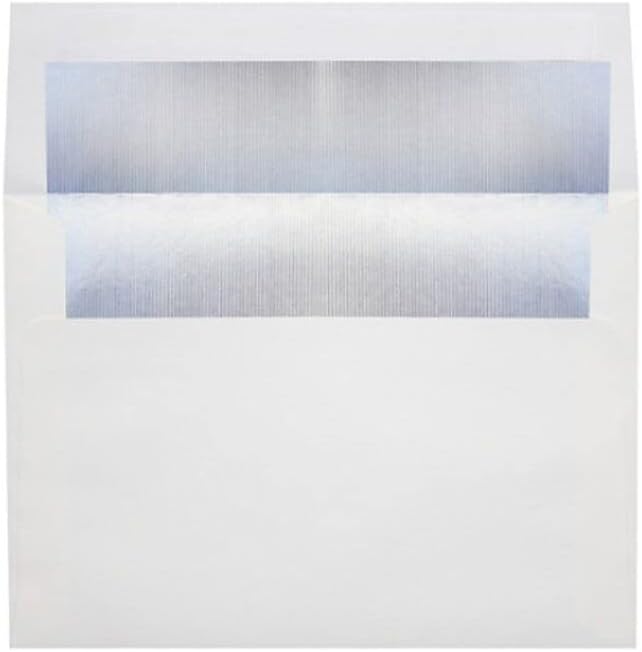 - UNIQUE DESIGN: If you want a set of durable envelopes, this set is the item for you. Made from 60 lb. text weight paper stock, these envelopes will hold up against damage and will look great no matter what you use them for. If this white envelope with a silver foil lining doesn't match your color scheme, we offer a variety of other options.
