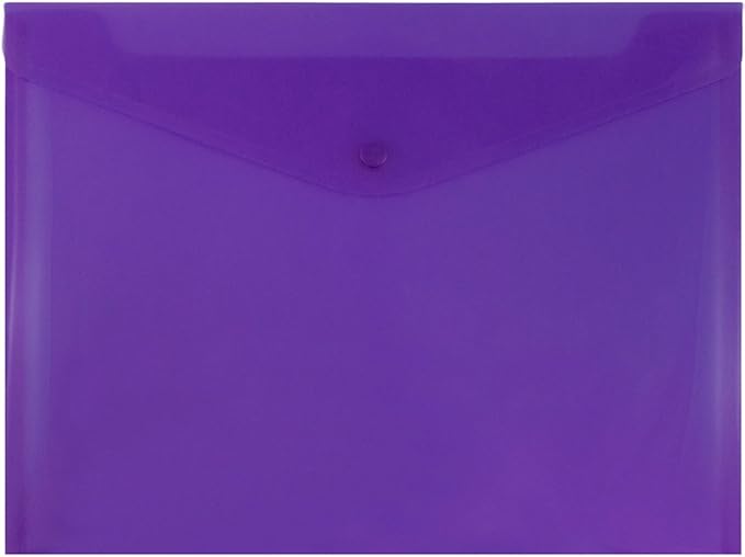 JAM PAPER Plastic Envelopes with Snap Closure - Letter Booklet - 9 3/4 x 13 - Purple - 12/Pack