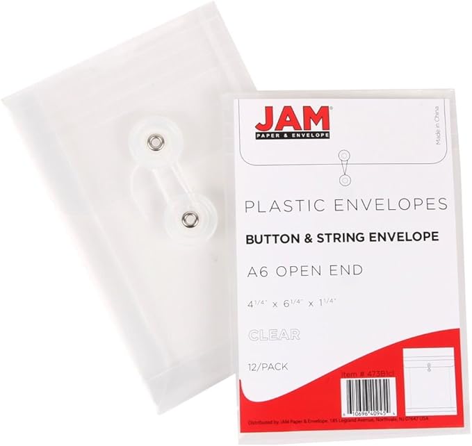 - Our smooth plastic envelopes are flexible and feature a button and string closure designed to keep contents inside secure and organized