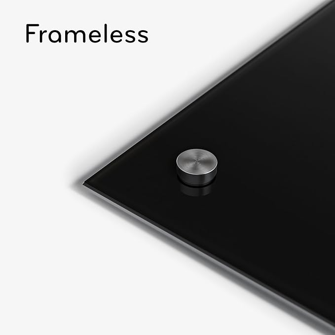 - SAFE, DURABLE, STYLISH: This high-quality board is designed to withstand daily use; tempered/shatterproof glass construction of this frameless dry erase board, accented with sleek silver grommets, guarantees safety and durability; includes marker and tray