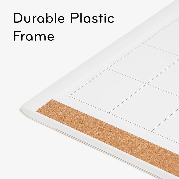 - CALENDAR VIEW: from schedules to dates, to meal planning, keep track of your entire family's tasks and events effortlessly with the convenient monthly calendar view dry erase board; features white pin-it frame and includes magnet, marker clip, and marker