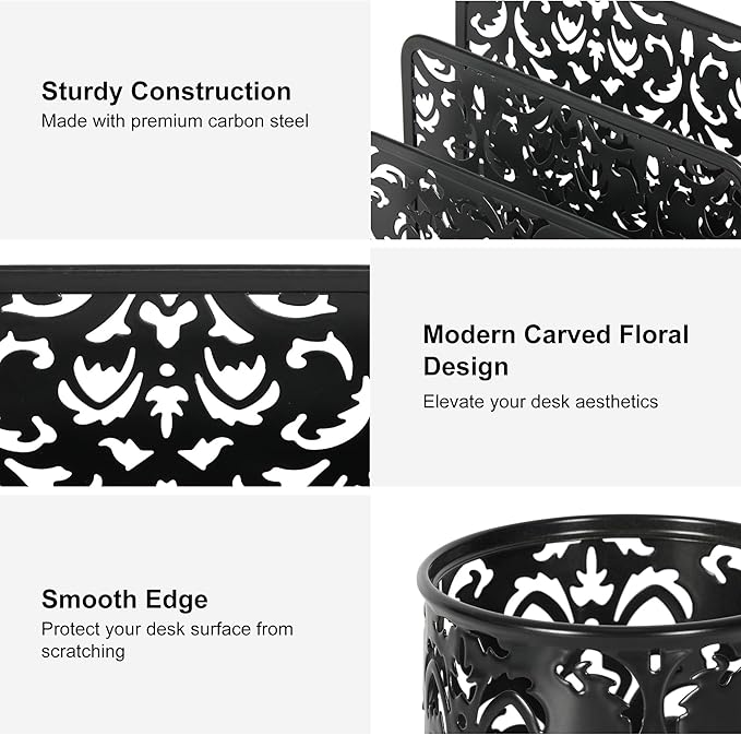 - Stylish Functional Workspace Upgrade: Elevate your desk aesthetics while boosting productivity! The elegant carved design complements modern offices, cubicles, or home desks. The aesthetic desk accessories can bring you a good office mood. Let you enjoy the ease and pleasure brought by the lovely and unified colors in your work.
