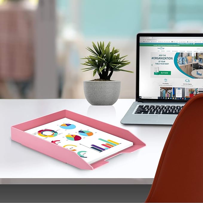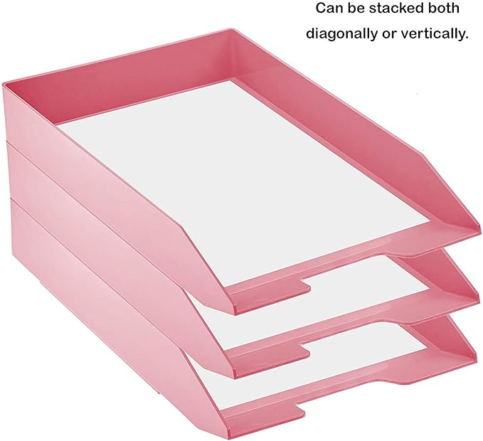 Acrimet Stackable Letter Tray Front Load, Letter Size, Plastic, Solid Pink Color, 1 Unit