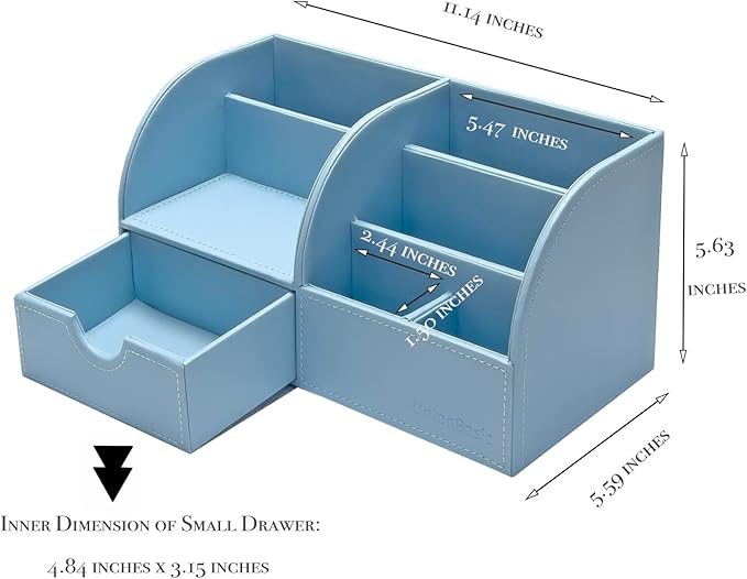 UnionBasic Desk Organizer - Multifunctional Leather Desktop Pen Holder Storage Box - Business Card/Pen/Pencil/Mobile Phone/Stationery Holder, Blue