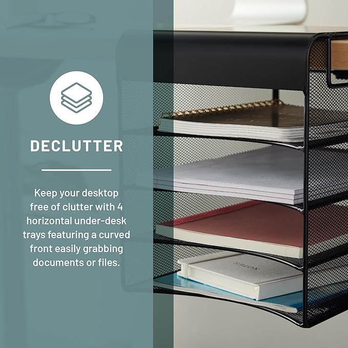 Safco Onyx Hanging Under Desk Organizer, 4 Trays, Office and Classroom Mailbox , Paper and Mail Sorter, Steel Mesh, Black