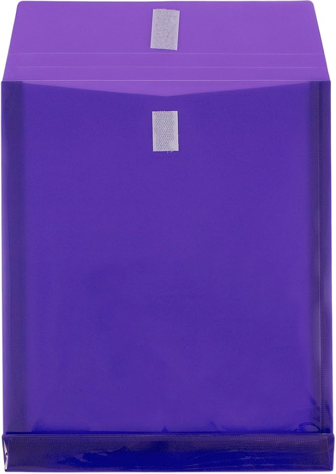 JAM PAPER Plastic Expansion Envelopes with Hook & Loop Closure - Letter Open End - 9 3/4 x 11 3/4 with 1 Inch Expansion - Purple - 12/Pack