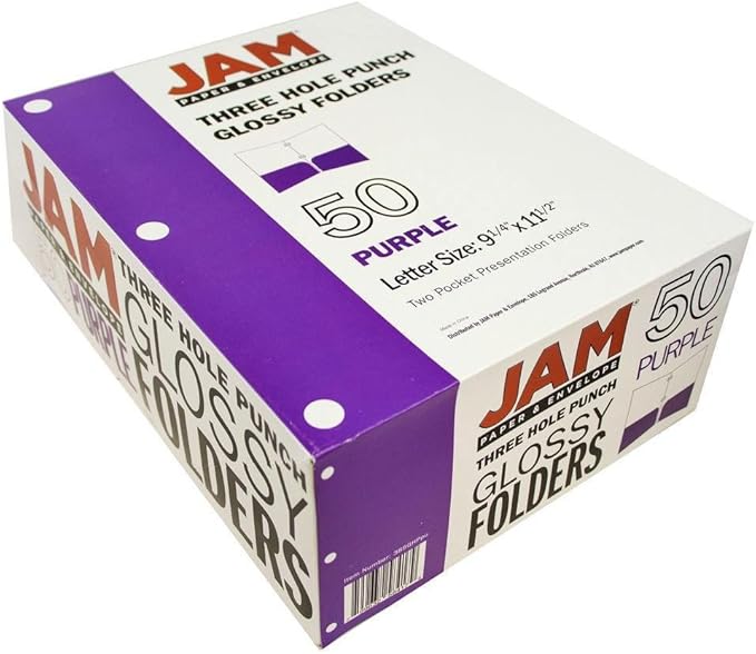 - Glossy 3-Hole Punch Project Folders l Color: Purple