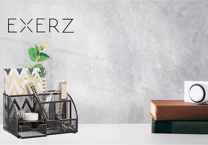 - Exerz Mesh metal desk organizer with seven compartments, including one pull out drawer;