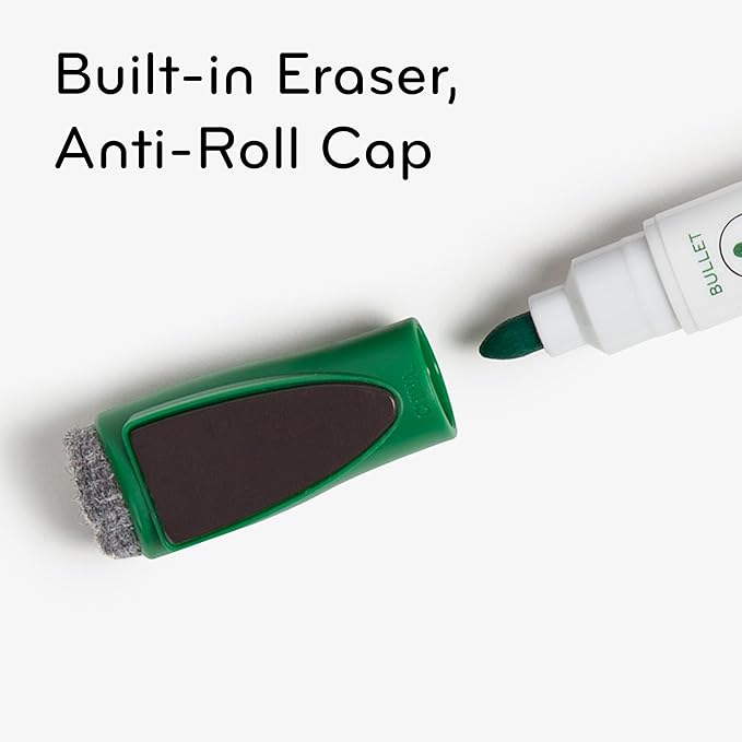 - QUICK CORRECTION CAP: Make corrections a breeze with the built-in felt erasers on the caps that allow for clean erasing without residue; featuring a contoured anti-roll cap shape, which prevents the markers from rolling off any flat surface or tray