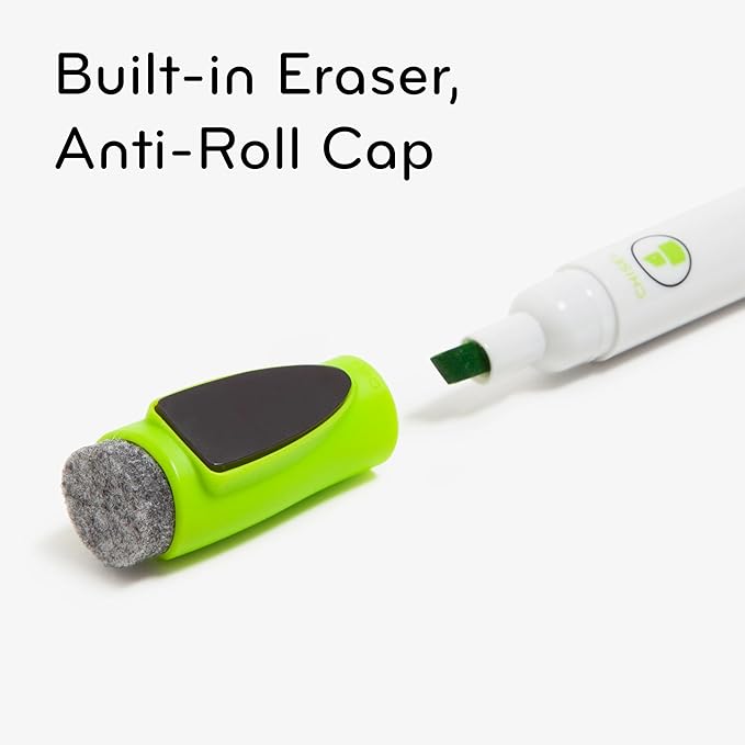 - QUICK CORRECTION CAP: Make corrections a breeze with the built-in felt erasers on the caps that allow for clean erasing without residue; featuring a contoured anti-roll cap shape, which prevents the markers from rolling off any flat surface or tray