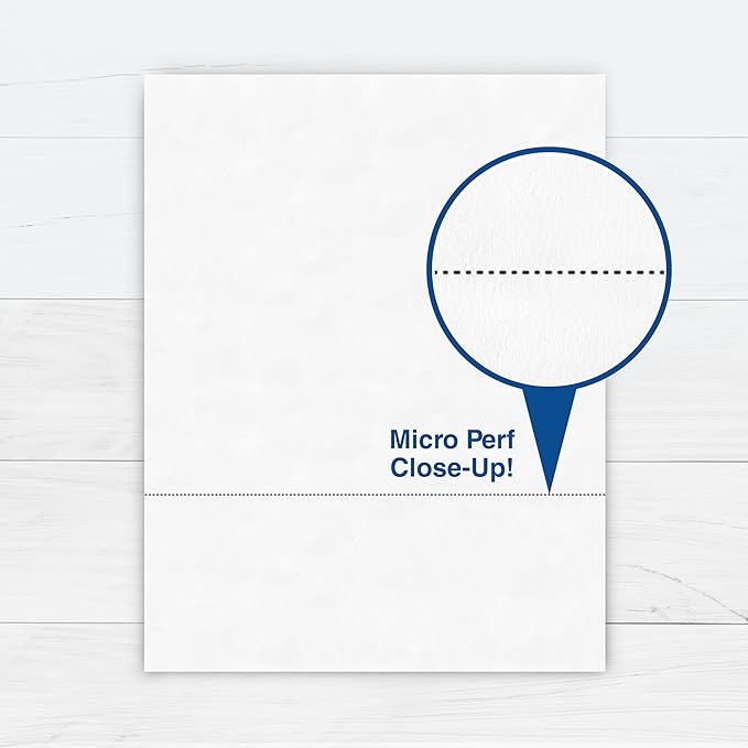 - Ream includes 500 bright white 8.5" x 11" sheets of 24 lb copy paper, featuring a clean horizontal perforation 3 1/4" from the bottom for quick tearing and folding