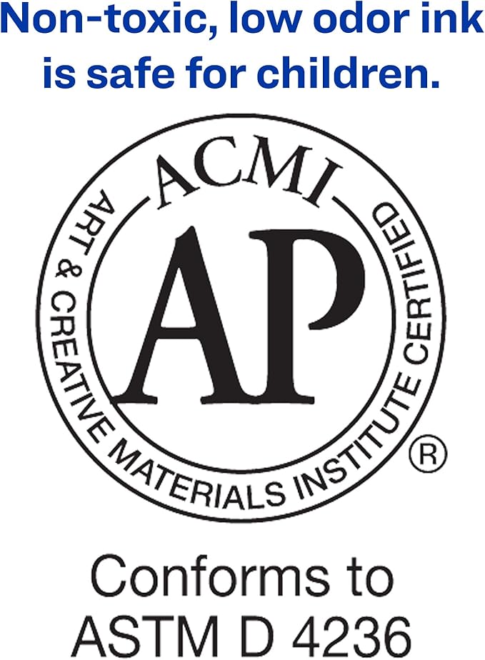 - Permanent markers won't dry out for up to half an hour without a cap; non-toxic marker is low-odor, ACMI certified and conforms to ASTM D4237