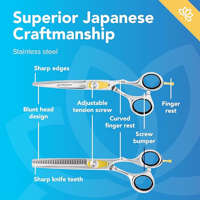 - Conveinience - At a weight of only 4.8 ounces each, anybody can handle these Equinox Professional Razor Edge Hair Cutting/Thinning Scissors with ease! Equipped with a golden painted tension and adjustment screw in each, you can effortlessly fine-tune these scissors to your desire of tension and tightness.
