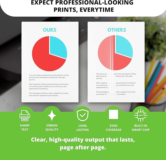 - Page Yield: Up to 8500 pages per black cartridge and 11000 pages per color cartridge at 5% coverage (Letter/A4).
