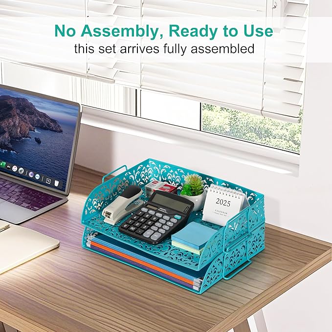 - Stackable Design: 2 tier desk trays help maximize desktop space while keeping documents within easy reach.