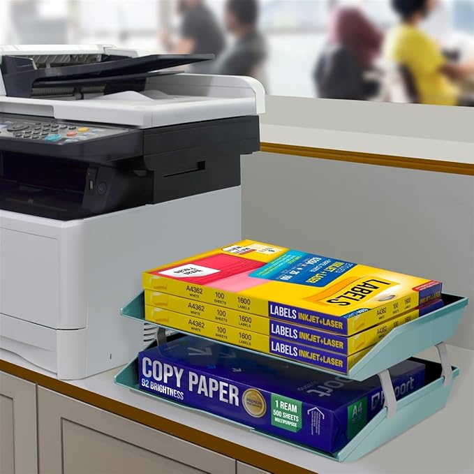 - Textured Surface and Beveled Front: The textured surface on the tray and the slightly beveled front of the letter tray prevent documents from slipping out, maintaining organization and preventing potential messes;