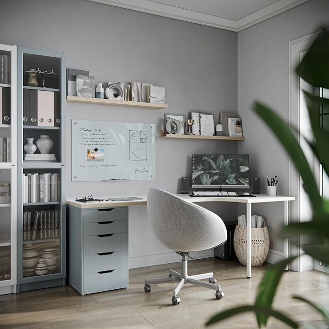 - CREATE AND COLLABORATE: Enhance your workspace, set your ideas free and boost your productivity with this 24" x 36" glass whiteboard with marker tray; this sleek white glass dry erase board adds a contemporary touch to any office, classroom, or home decor